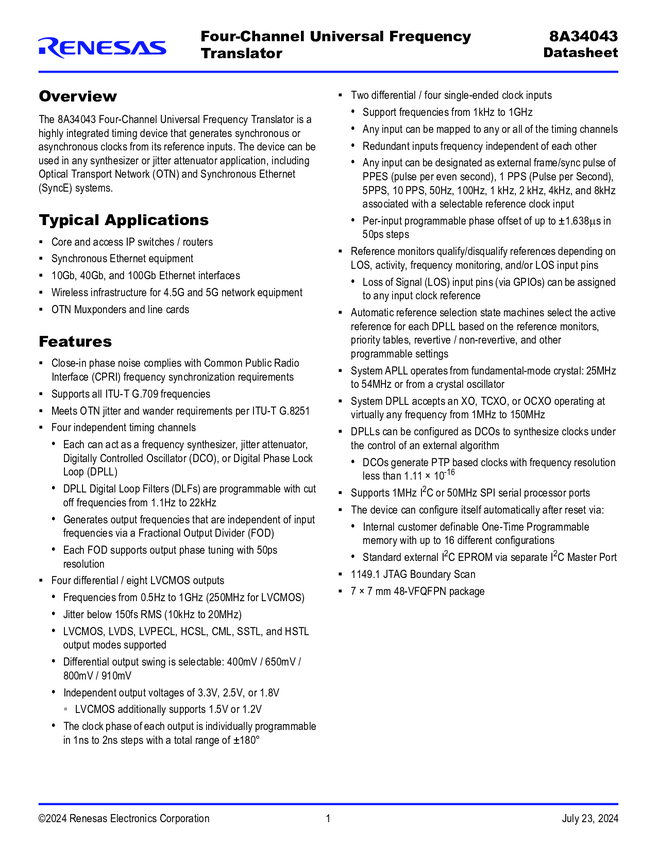 8A34043B-000NBG Multi-Channel DPLL/DCO - Four Channels
