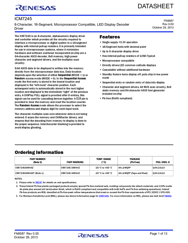 ICM7245AIM44ZT, ICM7245