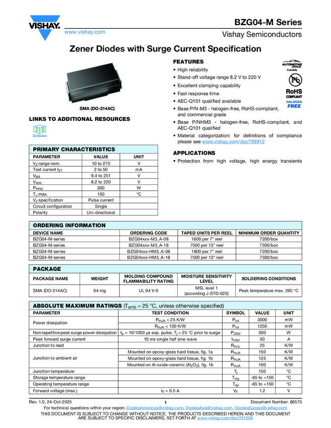 BZG04-M Series Zener Diodes with Surge Current Specification