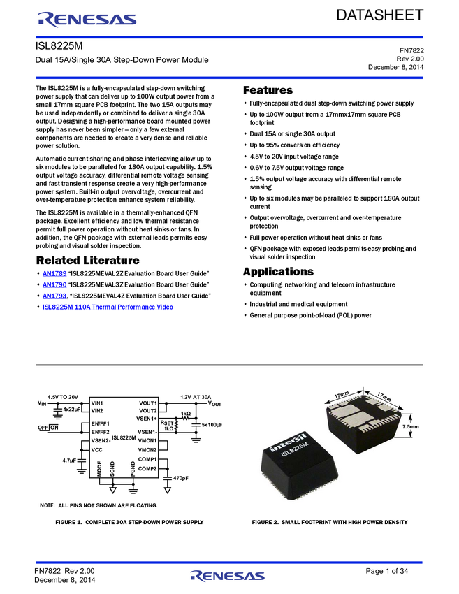 ISL8225MIRZ Dual 15A/Single 30A Step-Down Power Module