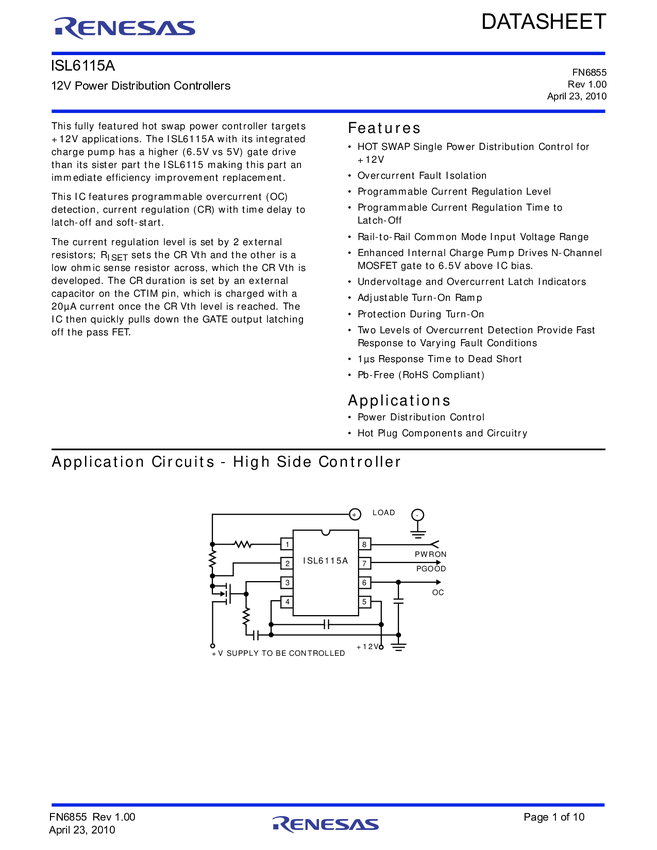 ISL6115ACBZ 12V Power Distribution Controllers
