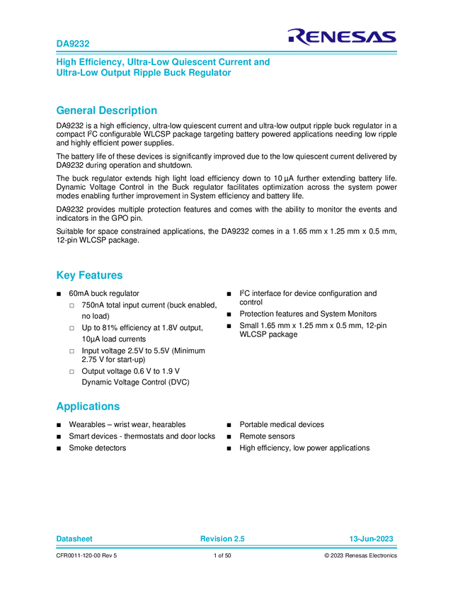 DA9232-81VZ2 Configurable, High-Efficiency Buck Regulator for GPS Sub-Systems in Wearabl...