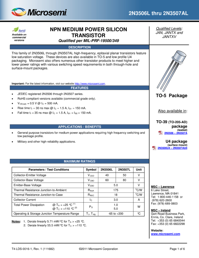 - 2N3506AL, JAN2N3506AL, JANS2N3506AL, JANTX2N3506AL, JANTXV2N3506AL, 2N3506ALe3, 2N3506L, JAN2N3506L, JANTX2N3506L, JANTXV2N3506L, 2N3506Le3, 2N3507AL, JANTX2N3507AL, JANTXV2N3507AL, 2N3507ALe3, 2N3507L, JAN2N3507L, JANS2N3507L, JANTX2N3507L, JANTXV2N3507L, 2N3507Le3
