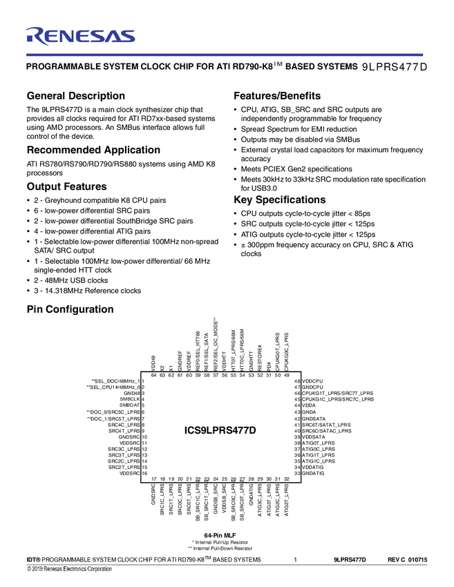 9LPRS477 Programmable System Clock Chip for ATI RS790 - K8 Based Systems