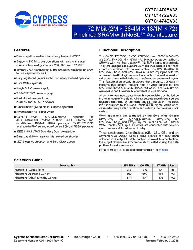 - CY7C1474BV33-200BGXC, CY7C1472BV33-200BZXC, CY7C1472BV33-167AXI, CY7C1470BV33-250BZXC, CY7C1470BV33-200BZXI, CY7C1470BV33-200AXI, CY7C1470BV33-200AXC, CY7C1470BV33-1XWI, CY7C1470BV33-167BZXC, CY7C1470BV33-167BZIT, CY7C1470BV33-167BZI, CY7C1470BV33-167AXI, CY7C1470BV33-167AXCT, CY7C1470BV33-167AXC