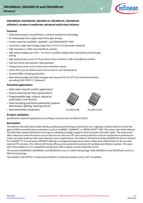 ISSI30R11H Coreless-transformer advanced solid-state isolator This solid-state isolat...