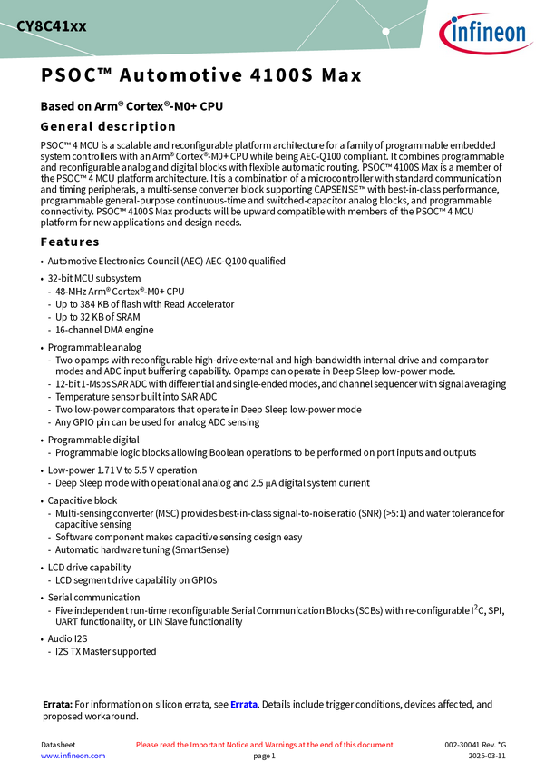 - CY8C4147LDS-S563, CY8C4147LDS-S553, CY8C4149AZS-S595, CY8C4149AZS-S585, CY8C4149AZS-S565, CY8C4149AZS-S555, CY8C4149AZS-S545, CY8C4149AZE-S595, CY8C4149AZE-S585, CY8C4149AZE-S575, CY8C4149AZE-S565, CY8C4149AZE-S555, CY8C4149AZE-S545, CY8C4149AZA-S595, CY8C4149AZA-S585, CY8C4149AZA-S575, CY8C4149AZA-S565, CY8C4149AZA-S555, CY8C4149AZA-S545, CY8C4148AZS-S595, CY8C4148AZS-S585, CY8C4148AZS-S575, CY8C4148AZS-S565, CY8C4148AZS-S545, CY8C4148AZE-S595, CY8C4148AZE-S585, CY8C4148AZE-S575, CY8C4148AZE-S565, CY8C4148AZE-S555, CY8C4148AZE-S545