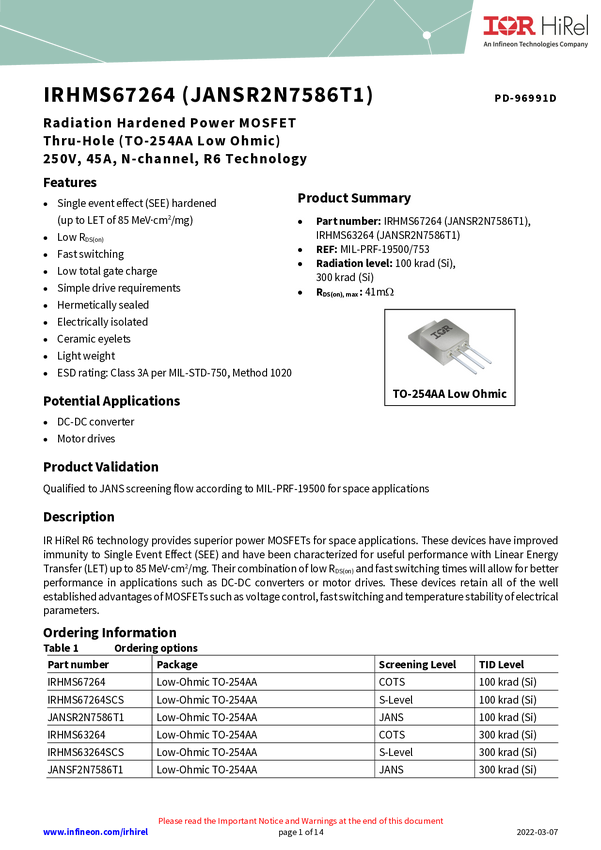 - JANSF2N7586T1, IRHMS67264SCSA, IRHMS67264SCS, IRHMS67264A, IRHMS67264, IRHMS63264SCS