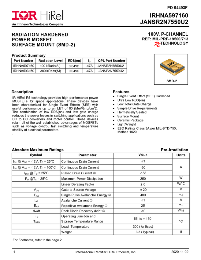 - JANSR2N7550U2, JANSF2N7550U2, IRHNA597160D, IRHNA597160, IRHNA593160D, IRHNA593160