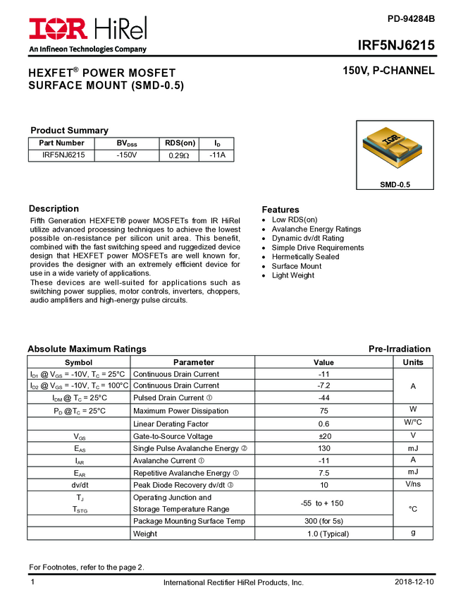 - IRF5NJ6215SCV, IRF5NJ6215