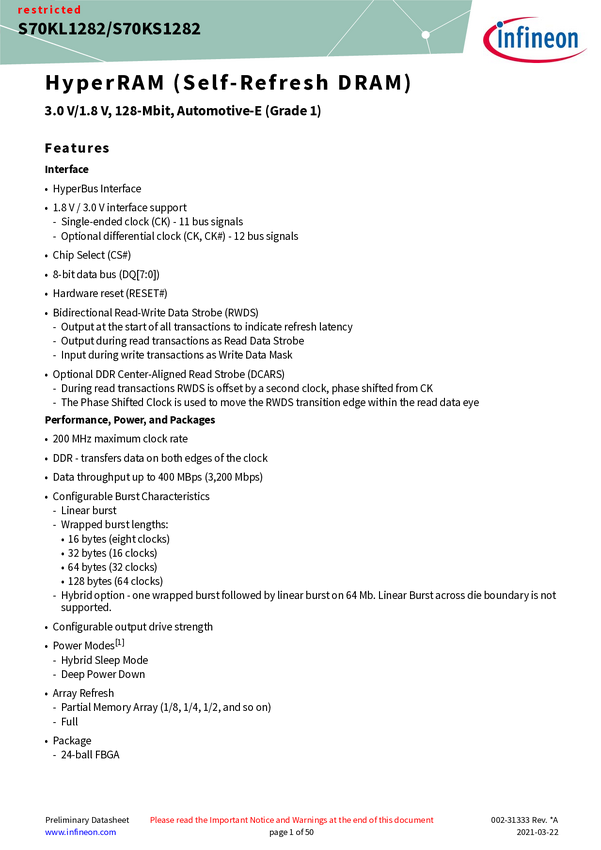 S70KL1282GABHM023, S70KS1282GABHM023, S70KS1282GABHM020