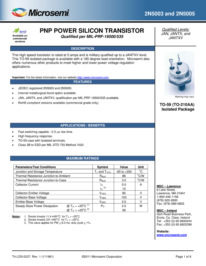 JAN2N5003, JANTX2N5003, JANTXV2N5003, 2N5003E3, 2N5005, JAN2N5005, JANTX2N5005, JANTXV2N5005, 2N5005e3