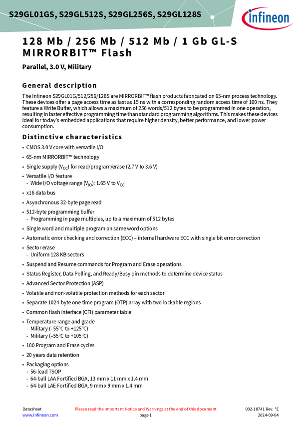 S29GL512S12DHE013, S29GL128S13FAEV13, S29GL128S13FAEV10, S29GL01GS12DHE023, S29GL01GS12DHE020, S29GL01GS12DAE023, S29GL01GS12DAE020