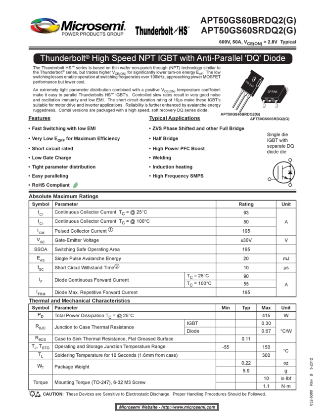 APT50GS60BRDQ2G IGBT w/ anti-parallel diode