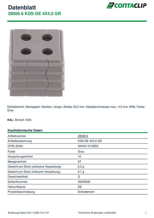28606.6 CONTA-CLIP KDS-DE 4X4,5 GR Element uszczelniający termoplastyczny elastomer...
