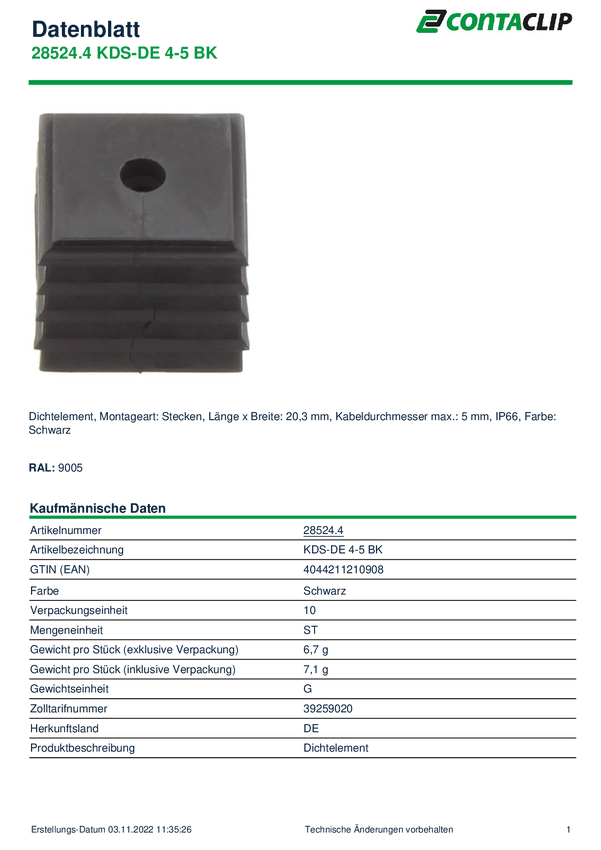28524.4 CONTA-CLIP 28524.4 Element uszczelniający KDS-DE 4-5 BK, (D x S x W) 20.3 x...