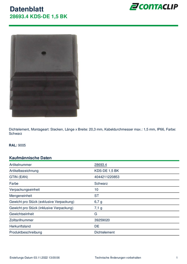 28693.4 CONTA-CLIP KDS-DE 1,5 BK Element uszczelniający termoplastyczny elastomer c...