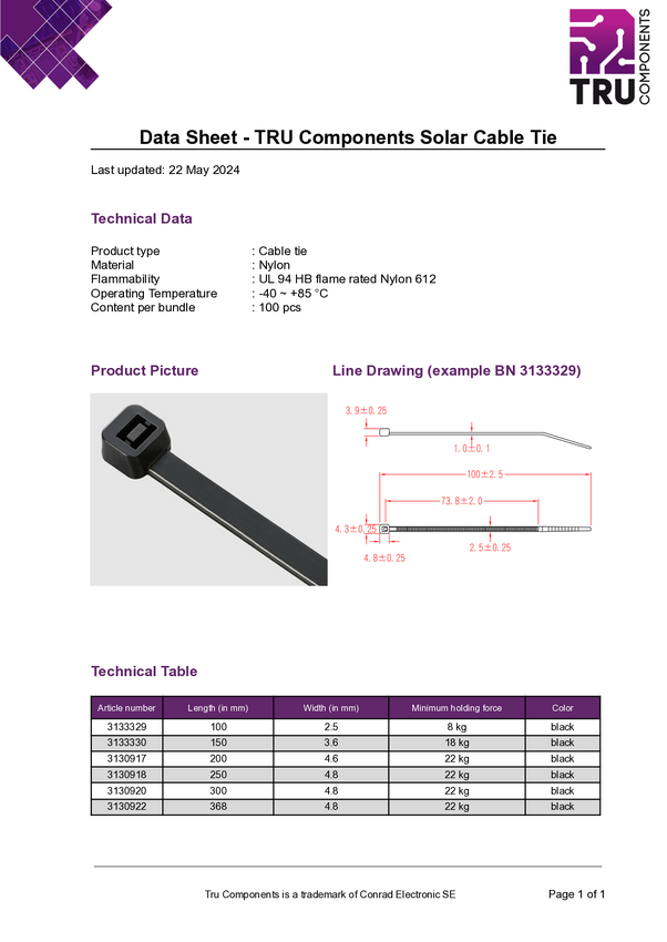 TC-12523688 TRU COMPONENTS TC-12523688 Opaska kablowa 368 mm 4.8 mm czarny 100 szt.