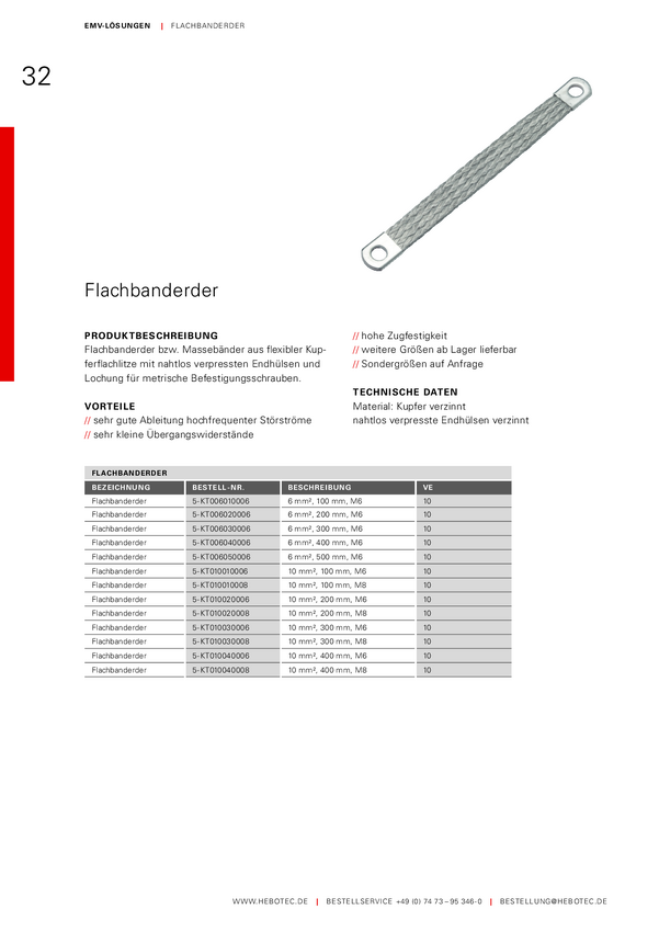 Taśma uziemiająca Hebotec 5-KT010050006C, 500 mm, Przekrój 10 mm ², długość 500 mm, otwór M6Materiał: Miedź ocynowanaBez