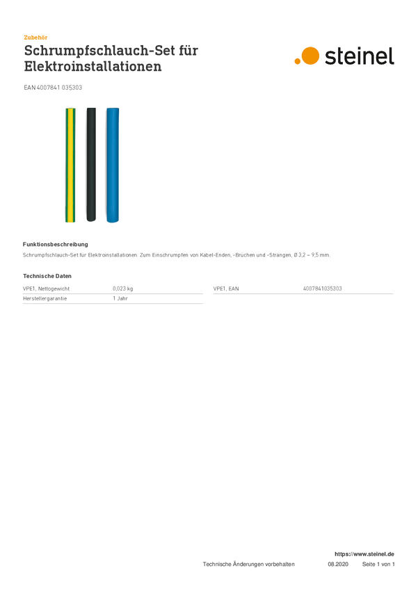 035303 Steinel 035303 Rurka termokurczliwa SCHRUMPFSCHLAUCH 3,2-9,5MM L 110MM E-SE...