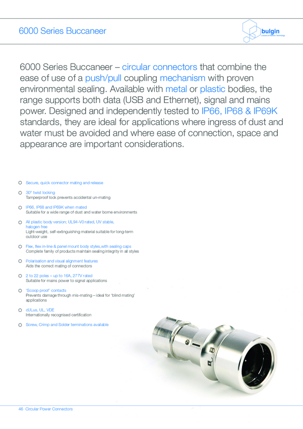 Bulgin PXM6010/02S/ST/0507/SN Złącze okrągłe złącze, proste Seria: Buccaneer 6000 Łączna ilość styków: 2 1 szt.