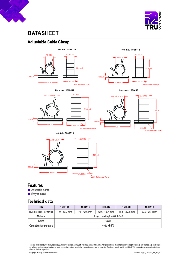 1593118 Podstawa montażowa TRU COMPONENTS TC-AP1720203 1593118, 16.50 do 20.10 mm,...