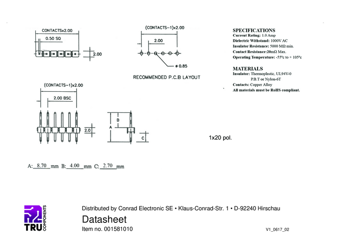 1581010 TRU COMPONENTS 1581010 Listwa kołkowa, męska, standardowa 1 szt.