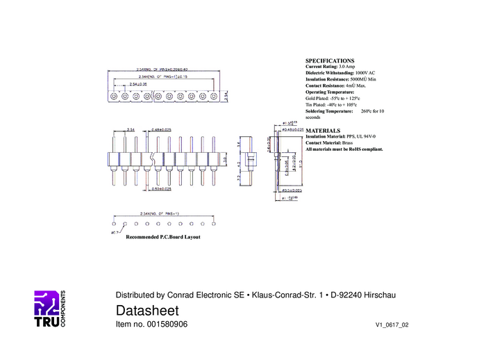 TRU COMPONENTS 1580906 Listwa kołkowa, męska, precyzyjna 1 szt.