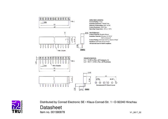 1580878 TRU COMPONENTS 1580878 Listwa kołkowa, żeńska, standardowa 1 szt.