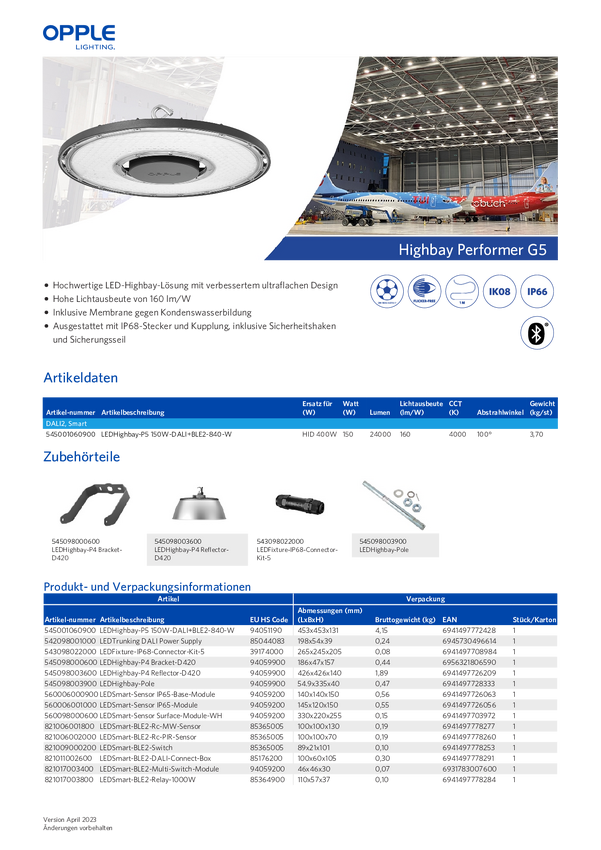 545001060900 Opple Oprawa LED LEDHighbay-P5 EEK: C (A - G) szary 150 W 24000 lm 100 ° 23...