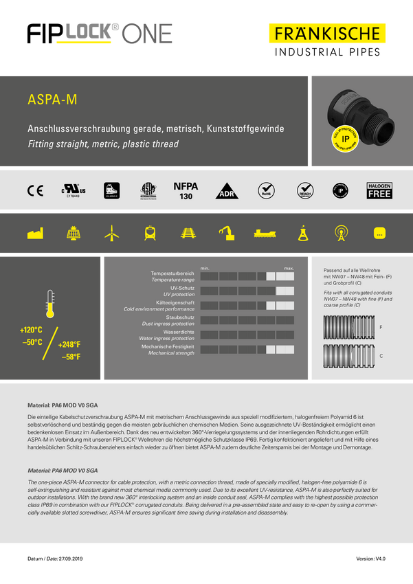 4890307501 Złącze śrubowe Fränkische Rohrwerke 4890307501 72.8 mm szary 4 szt.