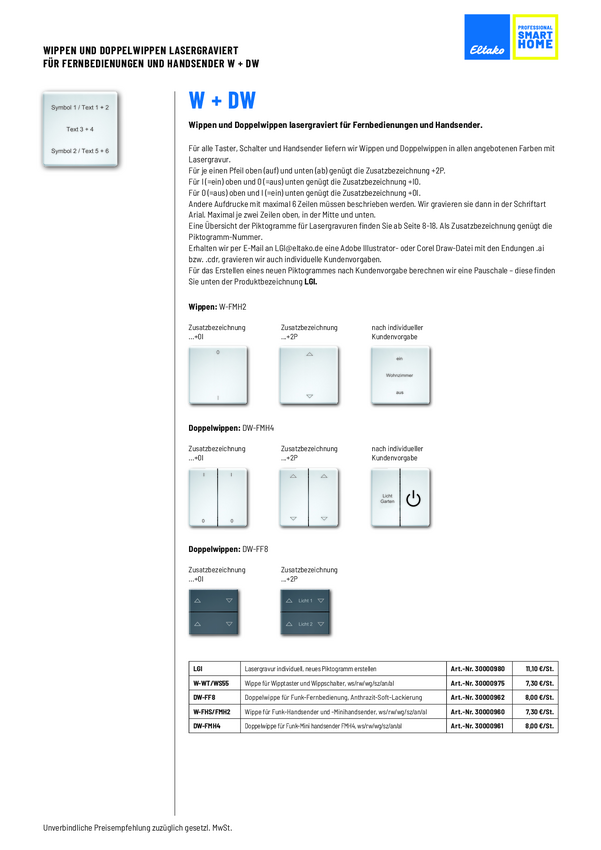 30000960 W-FHS/FMH2- Eltako Przełącznik kołyskowy