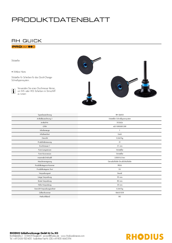 305424 Tarcza zapasowa Rhodius RH QUICK 305424 1 szt.
