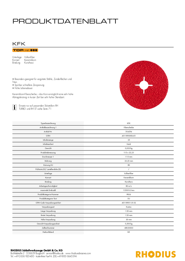 304294 Rhodius 304294 Dysk fibrowy stal nierdzewna, stal 25 szt.
