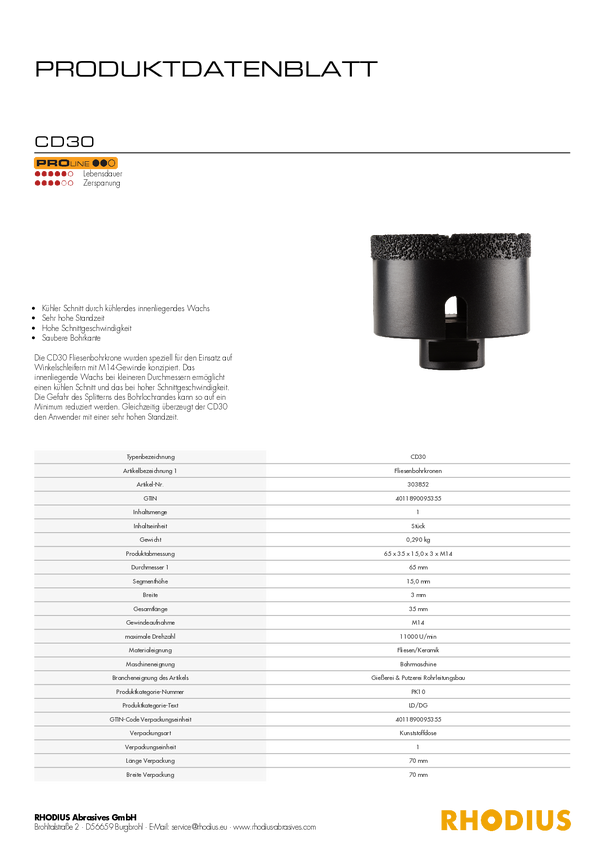 303852 Pogłębiacz Rhodius CD30 303852 1 szt.