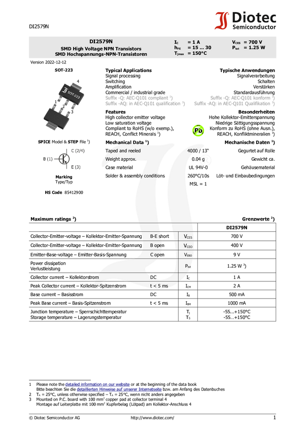 DI2579N Diotec DI2579N Tranzystor (BJT) - dykretny 1 szt.