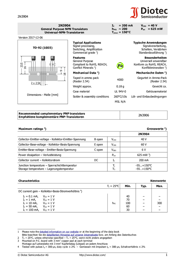 Diotec 2N3904 Tranzystor (BJT) - dykretny 1 szt.