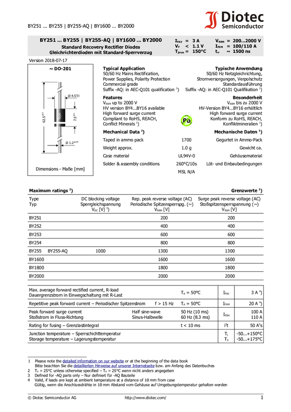 BY255-AQ Dioda prostownicza Diotec BY255-AQ N/A N/A