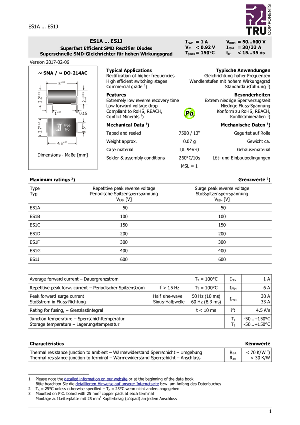 1582058 Superszybka wysokoefektywna dioda prostownicza TRU COMPONENTS 1582058 N/A N...