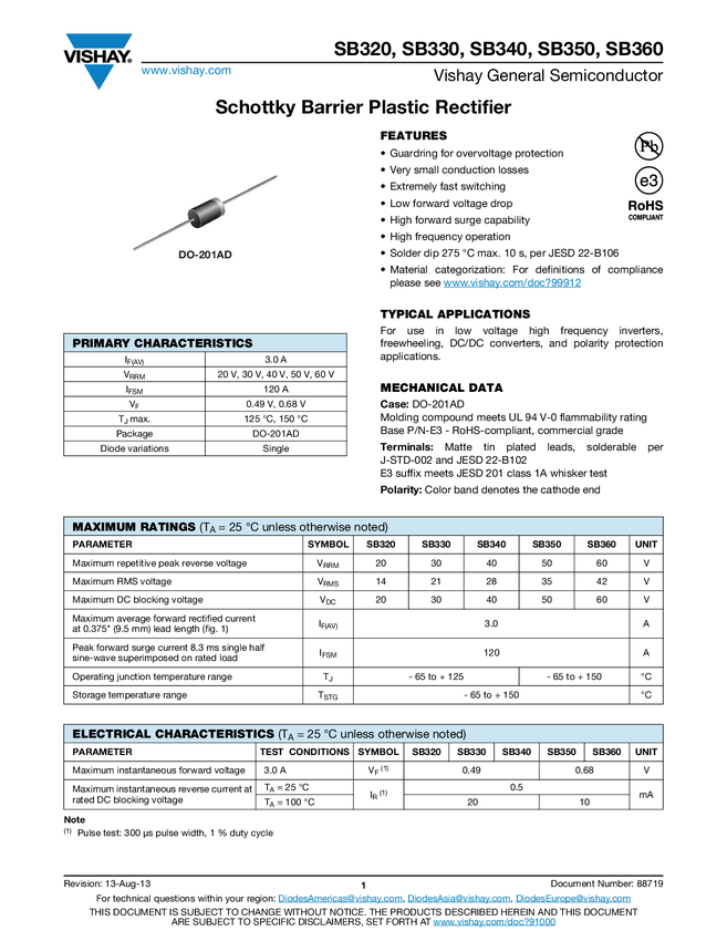SB360-E3/54 Dioda prostownicza Schottky'ego Vishay SB360-E3/54 N/A N/A N/A