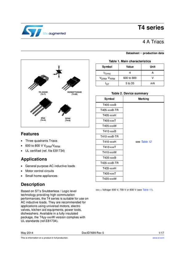 T410-600B Tyrystor (SCR) - TRIAC STMicroelectronics T410-600B T410-600B, 1 szt.