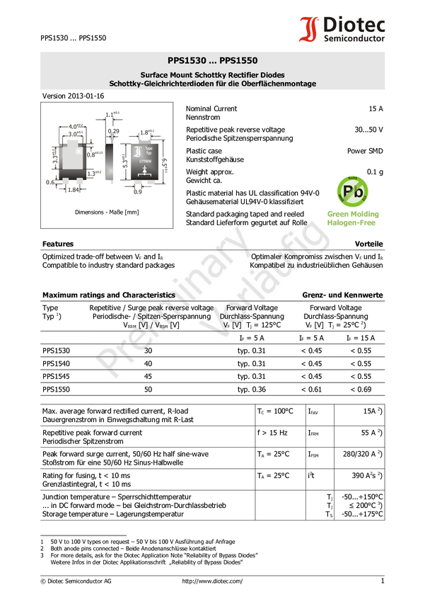 Dioda Schottky'ego Diotec PPS1545 N/A N/A N/A