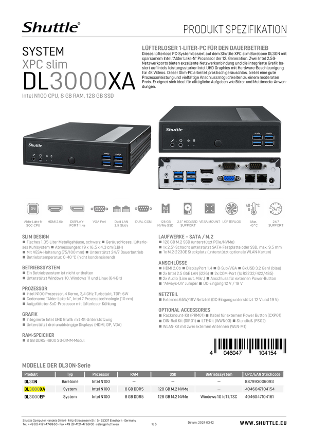 DL3000XA Shuttle DL3000XA Stacja robocza Mini PC