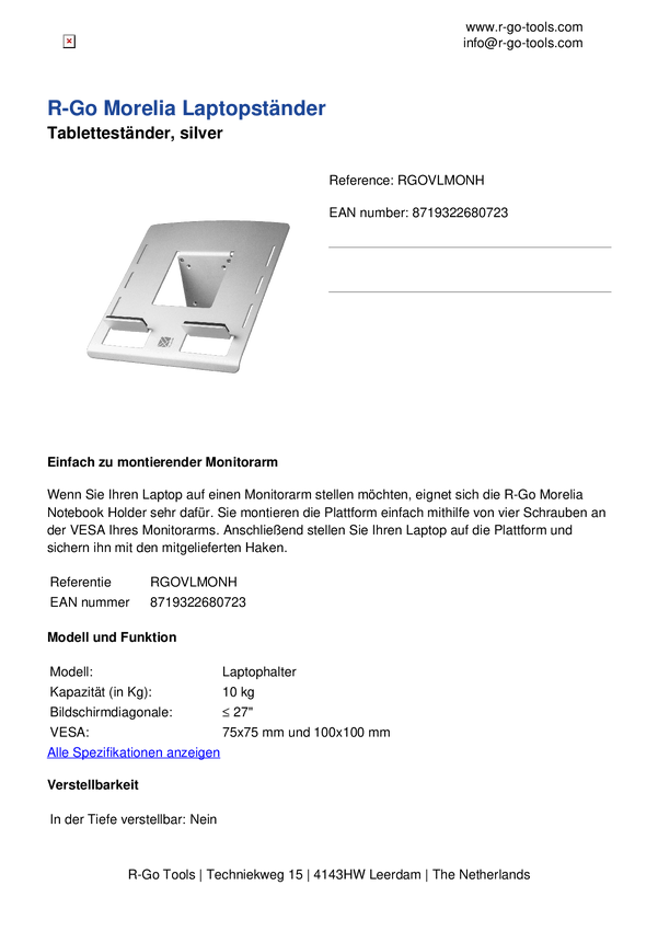 RGOVLMONH Podstawka pod notebooka R-GO Tools Morelia