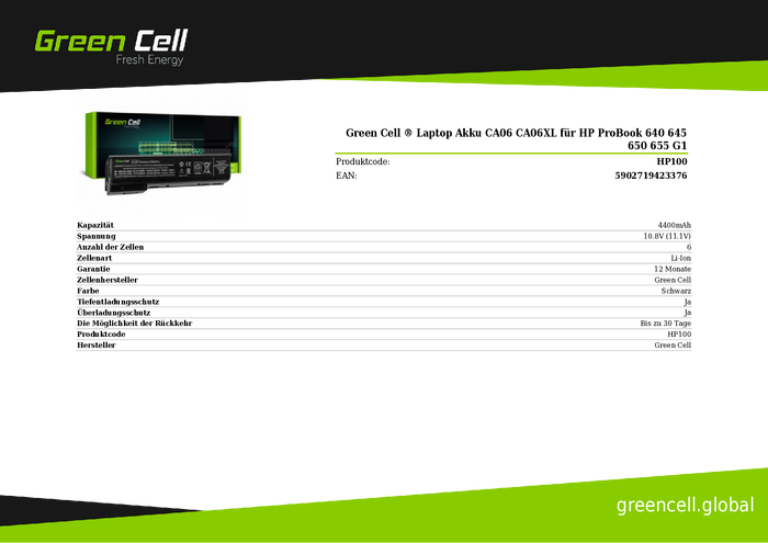 HP100 Akumulator do laptopa Green Cell HP100, 10.8 V, 4400 mAh