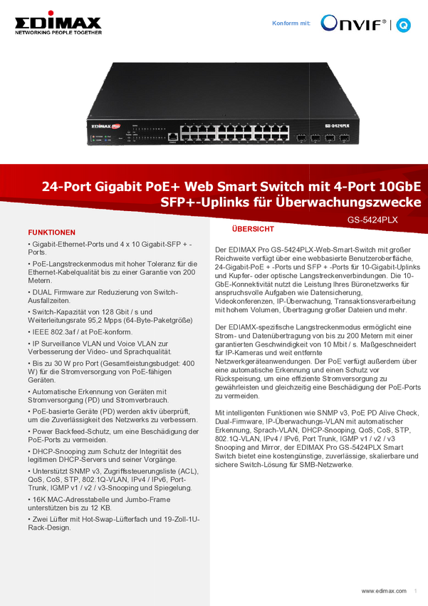 GS-5424PLX EDIMAX 24-portowy Gigabit PoE + Web Smart Switch z 4-portowym 10GbE SFP + ł...