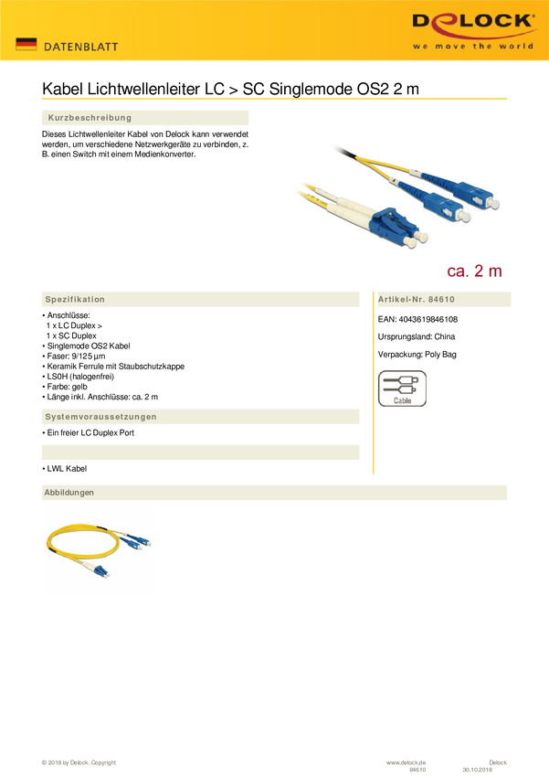 84610 Kabel światłowodowy LC - SC Singlemode OS2 m.