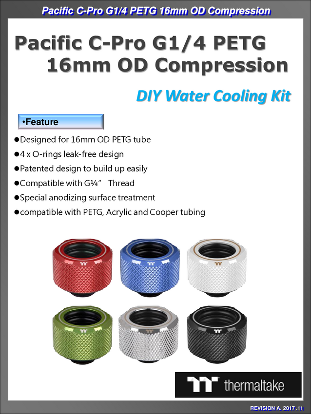 CL-W211-CU00WT-A Armatura chłodzenia wodnego Thermaltake Pacific C-PRO G1/4 PETG Tube 16mm O...