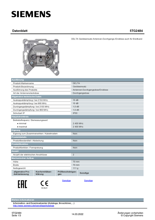 5TG2484 Wkładka antenowa urządzenia DELTA przez gniazdo/zakończenie również dla sze...