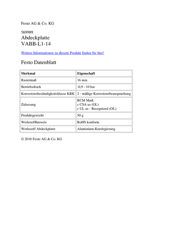 569989 Płyta przykrywająca FESTO VABB-L1-14 569989